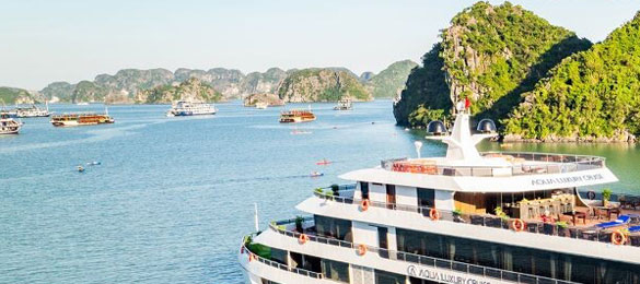 spectacular scenery of Ha Long Bay and Lan Ha Bay. All