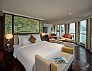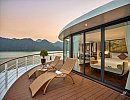Capella Halong cruise boasts a gentle, classic Indochinese style, yet remains undeniably luxurious and sophisticated. With 30 cabins spread across 5 decks, equipped with modern amenities and private balconies, guests enjoy privacy while still being immersed in the natural beauty of Lan Ha Bay. Another highlight is the ship's elevator system, allowing guests to move around easily. The elegant restaurant, with its large glass windows, allows guests to enjoy delicious Asian and European cuisine while admiring the stunning scenery of Lan Ha Bay. Furthermore, the cruise ship features a gym, sauna, massage services, and a cinema, ensuring a truly stylish and magnificent journey. The Capella cruise ship promises to provide guests with a wonderful experience on their voyage across the majestic Lan Ha Bay.