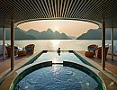 Capella Halong cruise boasts a gentle, classic Indochinese style, yet remains undeniably luxurious and sophisticated. With 30 cabins spread across 5 decks, equipped with modern amenities and private balconies, guests enjoy privacy while still being immersed in the natural beauty of Lan Ha Bay. Another highlight is the ship's elevator system, allowing guests to move around easily. The elegant restaurant, with its large glass windows, allows guests to enjoy delicious Asian and European cuisine while admiring the stunning scenery of Lan Ha Bay. Furthermore, the cruise ship features a gym, sauna, massage services, and a cinema, ensuring a truly stylish and magnificent journey. The Capella cruise ship promises to provide guests with a wonderful experience on their voyage across the majestic Lan Ha Bay.